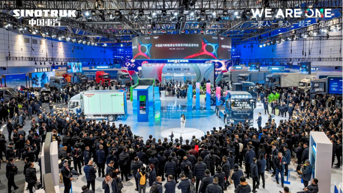 纵观整个展区,多个“交通节点”贯穿其中,每个节点均悉心呈现中国重汽不同产品系列的卓越风采,并与特定应用场景完美融合,全维度展现中国重汽产品的核心技术实力。新能源展区作为“立交桥的核心”,汇聚了中国重汽在新能源领域最前沿的技术成果,新能源明星产品矩阵在此一同发布,竞相闪耀,映衬出中国重汽在推动商用车领域向智能化、低碳化转型的坚定决心。