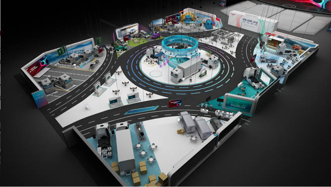 大会内场展区布置也巧妙融入了环形立交桥概念,秉持“信息交互,体验至上”的设计理念,为参会者带来一场强体验、重交互的现代科技盛宴。展区以环形动线布局,模拟立交桥的流动性和互联性,确保参观者可以流畅穿梭于各展区之间,为合作伙伴呈现一场清晰高效、探索无界的科技之旅。