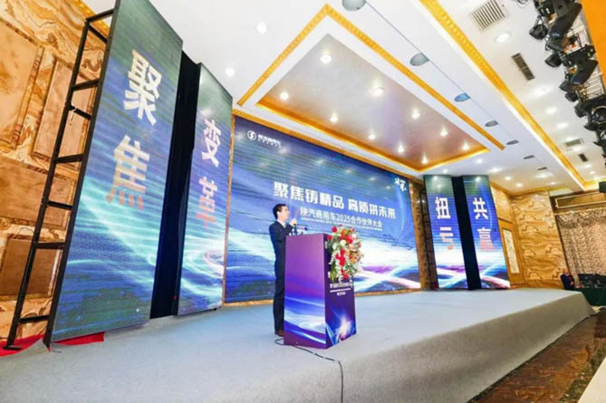 会上,陕汽商用车副总经理郭攀作《2025陕汽商用车营销策略报告》。在分析宏观经济环境与行业形势的基础上,详细阐述了未来一年的营销变革策略:聚焦产品,围绕渠道能力提升,实现高质发展。