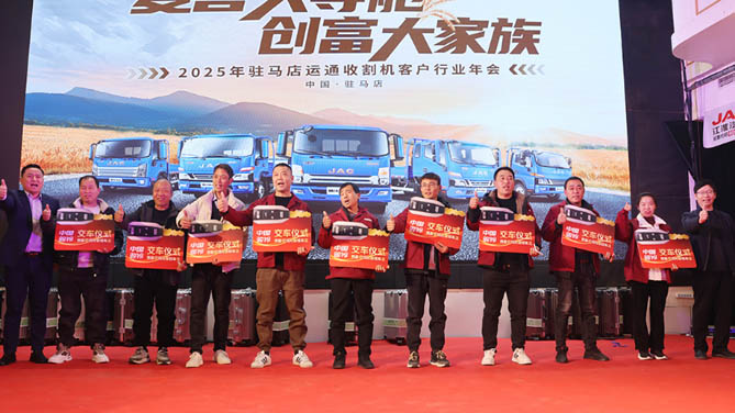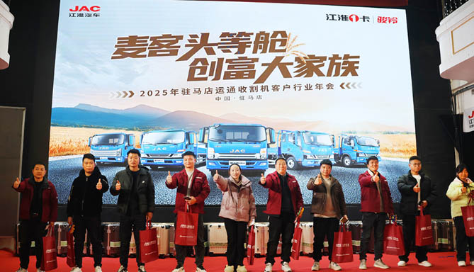 江淮1卡骏铃精研农业机械化行业特性和收割机用户的用车需求。此次,麦客1号七大主推车型集体亮相2025年江淮1卡骏铃收割机客户年会,充分满足了麦客对于高效、经济、舒适和安全的农机背载运输需求,为农业丰收增添助力。