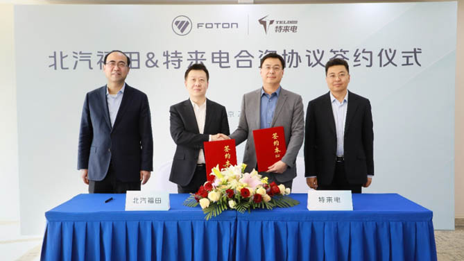 福田汽车副总经理、新闻发言人巩海东与特来电副总裁刘忠诚代表双方签署协议,主要针对充电基础设施运营、充电设备销售及服务等内容进行约定。