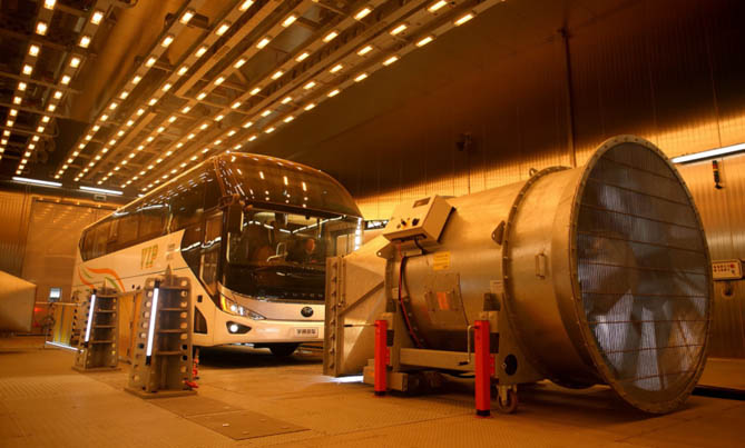 风阻也是影响车辆油耗的重要因素。为此,宇通也在车身设计上下了大功夫。宇通客车是国内最早建立基于风洞试验、高精度流场仿真的车辆空气动力学性能正向开发能力的客车企业,由国家级工业设计中心开展外观和结构设计,对标高铁、超跑,历经几百次的流场仿真迭代,设计出全局更优的低风阻方案,制作了行业最大比例的油泥模型并开展风洞试验验证,我们为车辆打造了“流线型战袍”,把车身风阻降到更低,风阻系数相比行业同级下降15%以上,实现节油约3%。