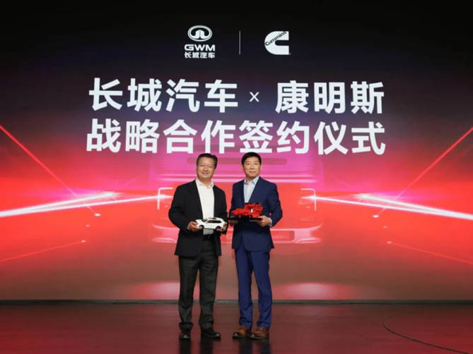 3月20日,长城汽车股份有限公司与康明斯(中国)投资有限公司正式签署战略合作协议。长城汽车董事长魏建军与康明斯副总裁、发动机事业部中国区总经理汪开军出席签约仪式。双方将聚焦重卡混动专用动力链的联合开发与推广,加速推动商用车减碳进程。