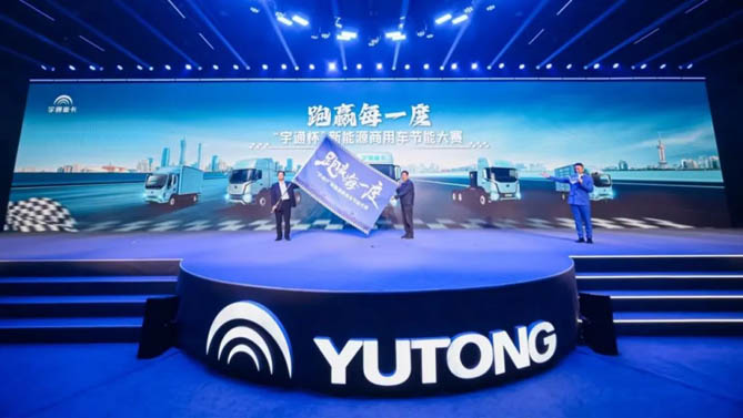 活动最后,宇通重卡正式启动“宇通杯”新能源商用车节能大赛,蔡进会长将象征新能源车巅峰竞技的旗帜授予宇通商用车重卡副总经理郭梁,这面旗帜将穿越全国各个赛区,让优秀的产品为客户带来更大价值,见证更多节能新纪录的诞生。