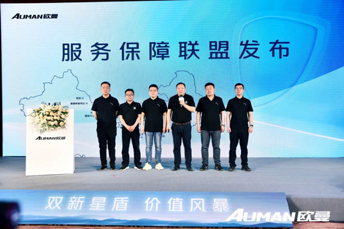 此次欧曼星翼 13L 500 马力燃气牵引车石家庄首发,既承载着欧曼燃气重卡产品的创新驱动力,也是对用户关怀的深入践行。活动上,欧曼发布了“服务保障联盟”计划,以十大服务承诺全程保证用户无忧运输。服务涵盖了全国所有欧曼服务站提供的一站式服务,发动机2年缸内故障只换不修服务,购车半年内客户使用原因导致故障免责维修1次的免责服务,发动机保修期内不限故障模式免费外出服务,发动机后处理排放质保8年100万公里免工时维修服务,以及发动机核心件5年保修、指定变速箱5年超长质保服务,一对一管家服务,还有保修期内超24小时未修复的停机故障按1000元/天补偿的限时承诺,新购车3个月内检修1次的免费检修,销售1年内夜间保外停机故障50公里内免费外出服务,以更贴心、更周全的服务为用户构筑运营的坚实“星盾”。