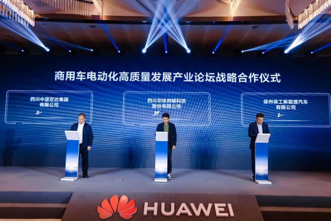 随着嘉宾们的精彩发言渐入尾声,论坛迎来重磅时刻。华为隆重举办商用车电动化高质量发展产业论坛战略合作仪式,携手众多行业伙伴,以战略合作为纽带,凝聚产业合力,共同开启商用车电动化高质量发展的崭新征程,驶向绿色低碳的未来彼岸。