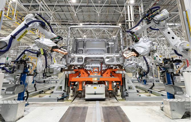机器人默契协作,有序搬运零部件;智能机械臂上下挥舞,精准完成每一道设定工序;AGV小车穿梭往来,高效完成每一次运输……这些充满科技感的智能制造场景不是在科幻电影里,而是在中国重汽智能工厂里真实上演。