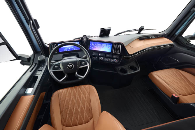 内舱设计及配置则细致入微,考虑到卡友的驾乘品质,内饰提供胡桃棕、琉光橙、赤霞红、远山青4种温暖时尚的配色,从视觉上传递愉悦情绪,舒缓司机心境。中控台设计精致,配以钻石切割饰件、贯穿式出风口,为司机营造一方舒适天地。更具人性化温度的是,欧曼银河3配备≤3.5级的无菌生态系统,提供空气清新健康的驾驶环境。同时,车内采用前置进气系统,将驾驶室噪音降低2-3dB,让驾驶环境更加静谧、舒适,保证司机在运输中也能感受到家的温暖。