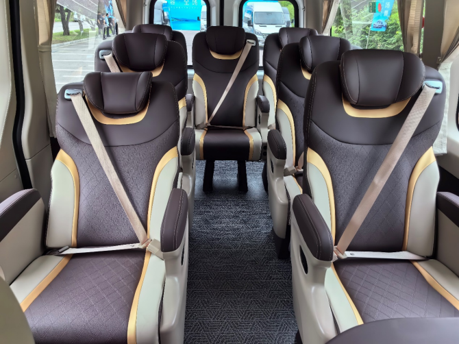 天骏V6E提供7座、9座、14座和15座四种座椅布局,满足不同客运需求。其中7座和9座版本C照即可驾驶,使用更便捷;14座和15座版本载客量更大,适合团体运输。而且该车搭载100.46kWh高容量电池(公交公告车型可选132.016kWh),电机最大功率180kW,续航最高达280km/380km(高速平原满载开空调工况),并支持28.8分钟快速充电(100.46kWh,20%-80%电量),大幅提升运营效率。