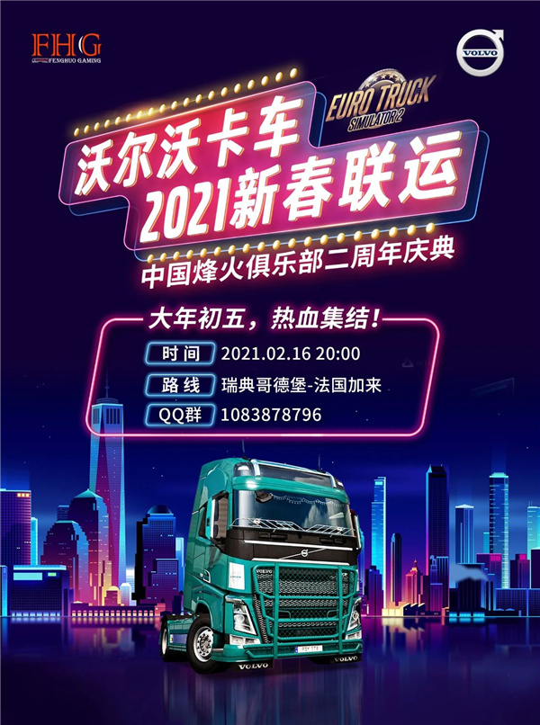 这个游戏界的“卡车神作”,沃尔沃卡车又怎会缺席?去年2月,沃尔沃卡车与欧卡2中的知名中国车队——烽火俱乐部(FH Gaming)推出“欧洲卡车模拟2网络联运”活动。烽火俱乐部成立于2019年,车队成员共120人,是亚洲第三个获得官方认证的车队。从曼海姆市(矿场)到加莱港口,去年的联运活动共吸引了30支队伍、近500人参与其中,大家用这种特殊的方式声援武汉,为中国加油!