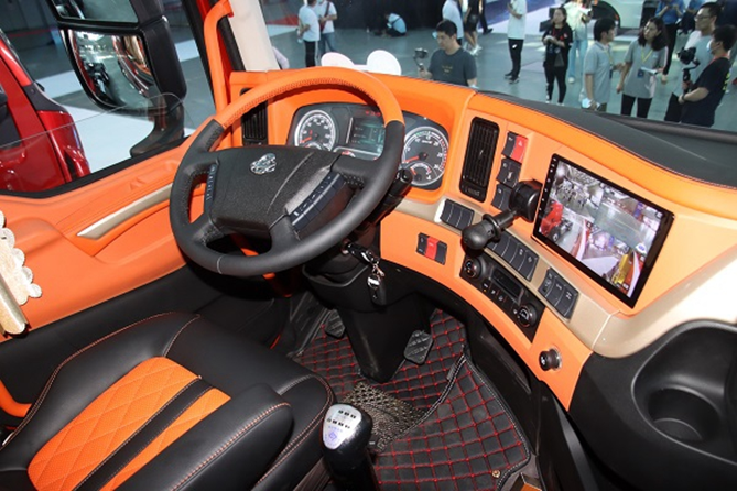 乘龙H5 载货车与H7牵引车两款车型基于原车内饰进行了多达十余项的改装升级,包括座椅套色、双床、仪表台、方向盘、门板的包覆,以及上车手扶的软化包裹、木地板总成、主副驾专用皮质脚垫、全车窗帘,甚至配备了车载专用冰箱、舒适座椅(通风、加热、按摩)、行车四路监控,全方位的提升了驾驶室豪华感与舒适性,为广大卡友们带来更优的驾乘体验。