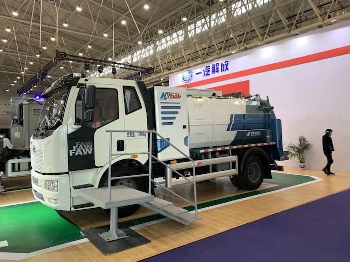 一汽解放在2019中国国际商用车展上展出了一系列的纯电动专用车,纯电动餐厨垃圾车、纯电动车厢可卸式垃圾车及纯电动扫路车齐亮相,体现了一汽解放积极响应国家政策,积极促进商用车减排环保快速发展。