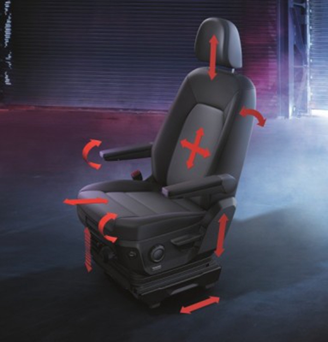 曼恩TGE的这两款多功能悬浮座椅满足了AGR对坚固基本结构、四向腰部支撑、可调头枕和座椅高度的要求。不仅可以帮助驾驶员调节最佳坐姿,还可以专项调整腰部支撑幅度,减轻脊椎所需承受的压力,让驾驶员及乘客在行车过程中保持既放松又健康的姿势。此外,符合人体工程学的设计能确保长途旅行的舒适、缓冲恶劣道路的颠簸,还能提供按摩功能让乘客更感放松。