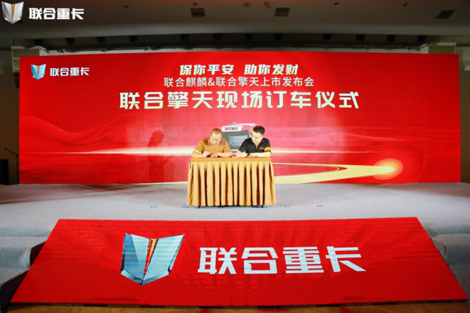 在联合重卡精心筹备的吉祥夜宴现场,从山西奔赴而来的客户冯志平在没有看实车,没有问价格的情况下,抢购联合擎天成功,成为全球首台联合擎天用户。山西宁诚运输公司则成为了首家与联合擎天签订战略协议的战略合作伙伴!