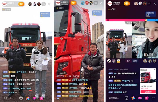 双11期间,中国重汽推出“亲人送豪礼  嗨购双11——中国重汽双11卡友关怀行动”。 11月10日,中国重汽汕德卡专场直播为卡友带去了一场钜惠盛宴,汕德卡产品经理空降直播间为卡友带来专业的汕德卡大马力燃气车产品解读,并与网红大咖“卡车女司机安徽宏姐”连唛分享汕德卡使用感受,宽敞明亮怀挡超舒适的评价引起卡友们的强烈共鸣;直播活动精彩不断,互动有礼,为卡友带去福利与惊喜。