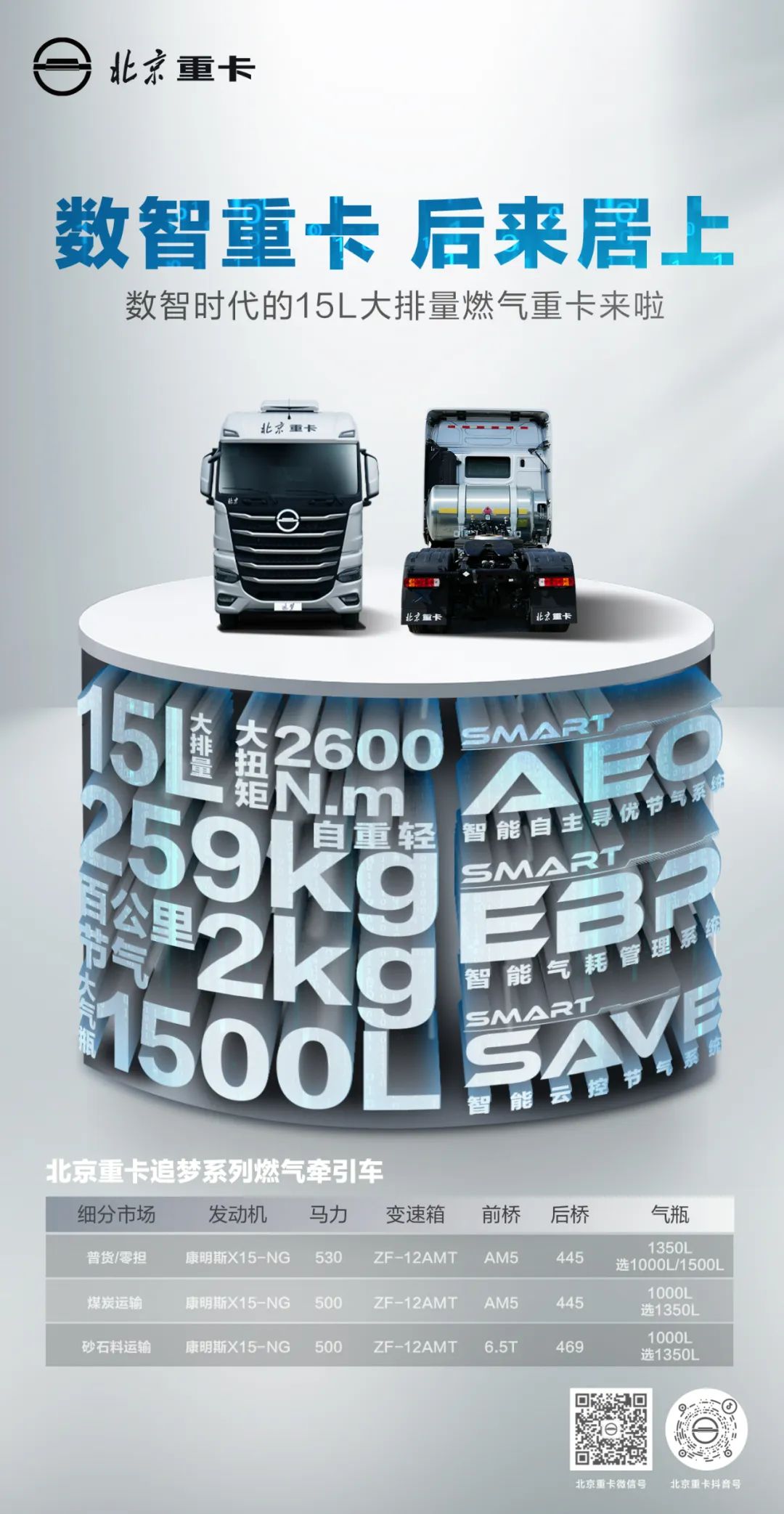 低气耗、高可靠、安全舒适、服务超越期待......作为一款开启数智时代的大排量燃气重卡,北京数智重卡燃气车必将以卓越的性能与出众的品质,成为运输市场降本增效的更优选择,赢得业界和广大用户的青睐。