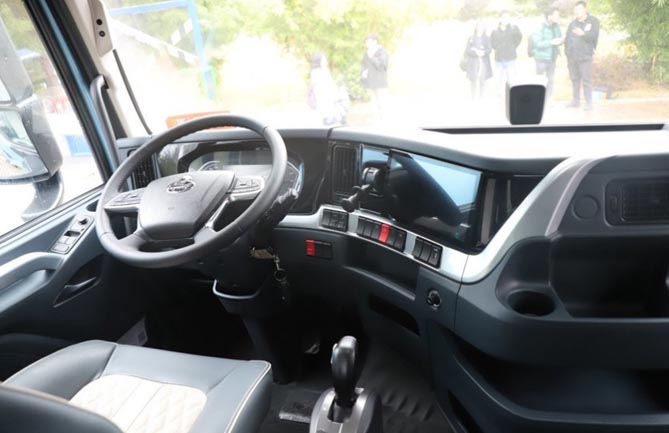 乘龙H7 550LNG内饰全面焕新,舒适性配置赶超高级轿车,为客户长途驾驶提供更舒适的驾乘体验。超炫酷轿跑级液晶组合仪表,科技时尚感十足;多功能方向盘,行车控制按键丰富,操作轻盈便利;驾驶室采用平地板设计,中部活动空间大,轻松转身不受限;多功能航空座椅,包裹性强,开着舒服不累人,大大降低驾驶疲劳强度。