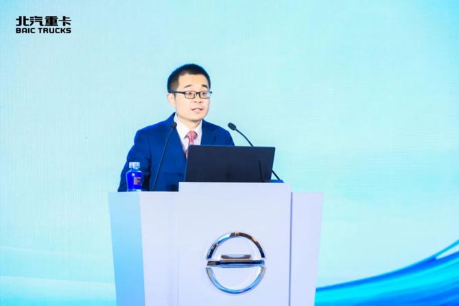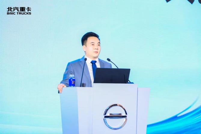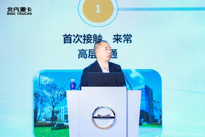 营销公司服务与配件管理部总监桑心成作题为《共创卓越体验 超越客户期待》的服务策略报告。他指出,2024年是服务体系能力跃迁的关键之年,北汽重卡服务团队将从管理型向赋能型转变,逐步提升客户服务能力与水平,以客户为中心超越客户期待。
