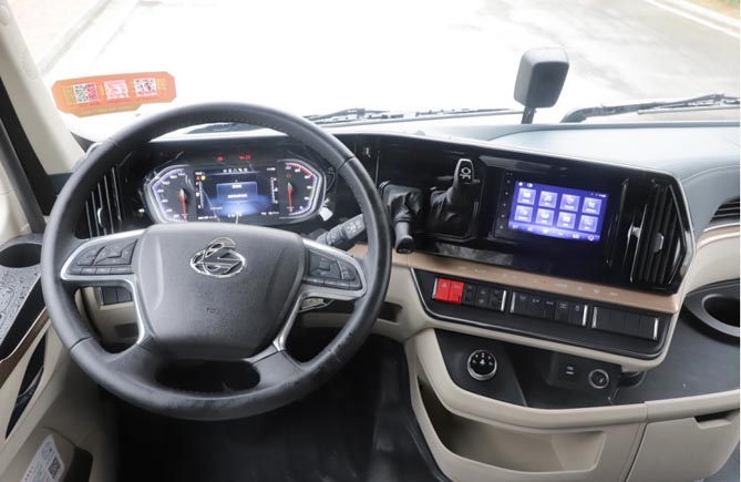 乘龙H5V LNG牵引车将古典“龙元素”与现代美学汽车设计完美结合,外观威武霸气,科技感十足;驾驶室采用平地板设计,空间够大,储物空间更多,使用更便捷打造了车轮上的精装“一室一厅”。高科技仪表搭配智能车机系统,呈现出轿车级的质感。5A级健康座舱搭配L2+智能驾驶,让卡友在长途驾驶的过程中能够更加舒适,省心省力,也让车队司机招募变得更easy!