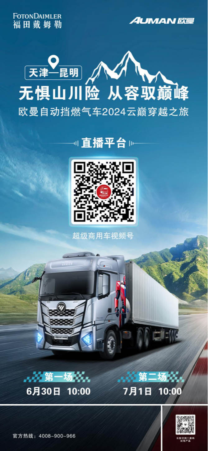 2024年6月29日,以“无惧山川险 从容驭巅峰”为主题的欧曼自动挡燃气车2024云巅穿越之旅即将启动。满载日用调料品的欧曼星辉自动挡燃气车将从渤海明珠天津到南国春城昆明,穿越2700公里,历经2000米海拔落差,开启一场极限挑战,展现欧曼自动挡燃气重卡的极致性能。