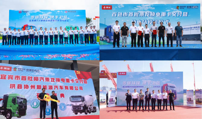 以东风柳汽乘龙H5换电牵引车为例,自上市以来,凭借其“极致轻量”的核心理念和“高效、省电、安全、可靠、舒适”等多重价值,赢得了广大用户的青睐,在山西、河北、内蒙古、广西、江西、四川等多个地区实现批量交付,助力众多大型企业实现绿色物流转型。