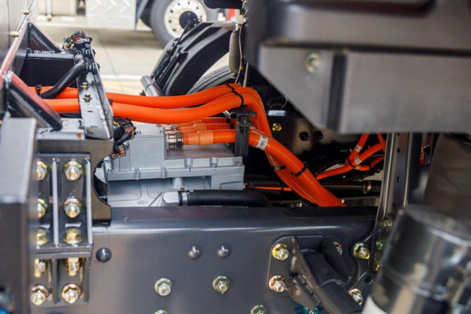 整车配备行业顶级电芯的400kW·h电池包,循环寿命长,充换一体设计更是让人眼前一亮。5分钟换电,综合续航里程达250km,完美匹配高频次运输的需求。同时应用多级能量回收辅助制动解耦技术,使能量回收率超过20%,电耗比国内主流低15%。按每年使用500W度电计算,一年可节省高达9万元!