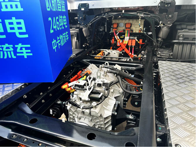 欧航智蓝ER246度纯电中卡同样是辆9.78米大单桥载货车,其货厢容量达到了63立方。电池采用侧置的布局形式,一是释放驾驶室后方的空间,保障货厢容量;二是有效降低车辆的整体重心,使得高速行驶更加稳定,提升行车安全性。