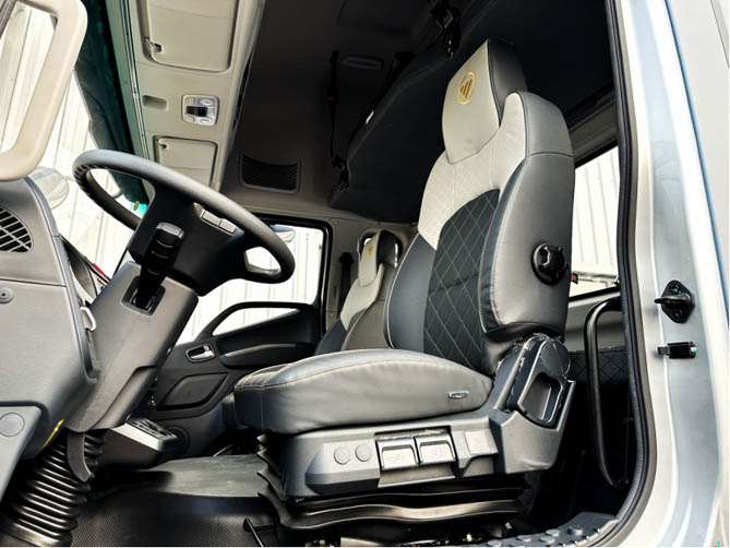 动力总成选用绿控电机以及4档AMT变速箱的动力组合,电机动力表现优秀,最大输出功率 210kW,扭矩可达1100牛米,爬坡能力达到了30%,动力强劲,换挡灵活,加速、超车都轻松自如。