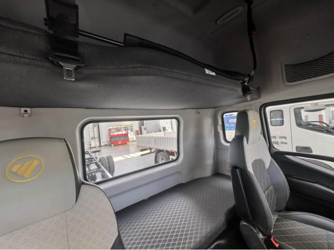 驾驶室是驾驶员呆的时间最长的地方,因此驾驶室的舒适性和空间大小显得尤为重要。欧航智蓝ER·246纯电中卡最大限度的优化了驾驶室空间,采用平地板设计,使得车内站立空间可达1.9米,为驾乘人员提供了宽敞舒适的空间。平地板设计不仅方便驾驶员在车内活动,还能在装卸货间隙为驾驶员提供舒适的休息场所。