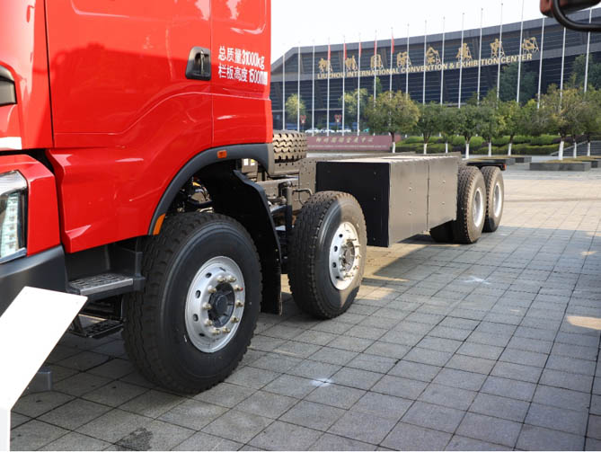 “运得多”是工程运输的核心竞争力。乘龙H7纯电自卸车车辆采用双永磁同步电机+4AMT变速箱组合,整车最大功率达460kW(约626马力),重载起步毫不拖沓。底盘采用一次冲压成型大梁,被誉为“龙的脊梁”。2*9.5T前桥与2*25T轮减后桥(速比6.733),搭配载重型钢板弹簧与4螺栓双斜拉骑马卡,更是保证了整车的坚固耐用。电池采用侧置布置,重心更低,整车稳定性好。8-8.7米超长货箱,装载容积较同类车型提升18%。
