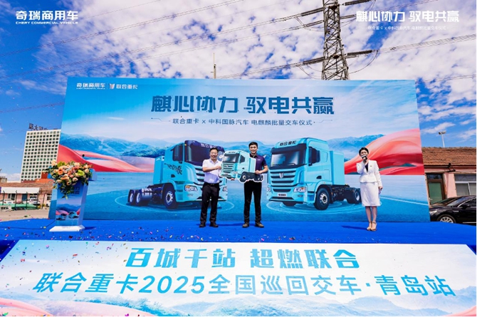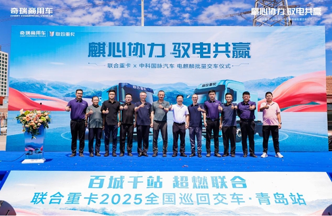 7月29日,“麒心协力 驭电共赢——奇瑞商用车联合重卡&中科国脉汽车,电麒麟批量交车仪式” 在青岛港隆重举行。山东省港口集团、奇瑞商用车、中科汽车等多方领导齐聚现场,共同见证首批10台电麒麟正式交付,这标志着三方在港口新能源物流领域的战略合作迈入实质性落地阶段,也为山东智慧绿色港口建设注入了全新动能。