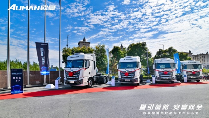 2025年9月29日,以“星引前路 安富双全”为主题的欧曼星翼危化品车上市发布会在大庆隆重举行。搭载星辉动力的欧曼星翼危化品车正式上市,同时公布订车政策,为客户提供卓越产品和人性化服务。发布会现场,批量欧曼星翼危化品车交付订车客户,并斩获52台区域客户战略合作订单。本次上市,是欧曼依托技术积淀与架构创新,精准契合多元细分市场需求的成果体现,为危化品运输行业绿色升级提供新动能。