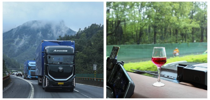 9月29日,欧曼银河全球价值品鉴之旅(混动篇)车队完成汉中至成都段约450公里征途,顺利驶入西南物流枢纽。驶入成都郊区后,在银河9混动驾驶室内放置一杯红酒测试稳定性,即便经过井盖、轻微起伏路面,红酒始终未洒,印证其底盘调校优势。此次欧曼银河9、银河5M混动重卡及银河7燃气车三车联动出征,在同一条险路上各展所长,以“征程验实力、品鉴促体验”诠释场景化产品核心价值。