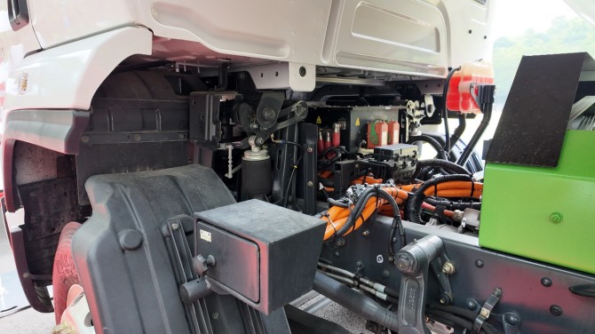 该车搭载法士特电机与法士特变速箱的黄金动力组合,峰值功率可达410kW。这样的动力储备,面对乡村小路的陡坡、坑洼路段,即便车辆满载饲料,也能轻松应对,起步平稳、加速有力,不会出现动力不足导致的爬坡吃力、行驶卡顿等问题。