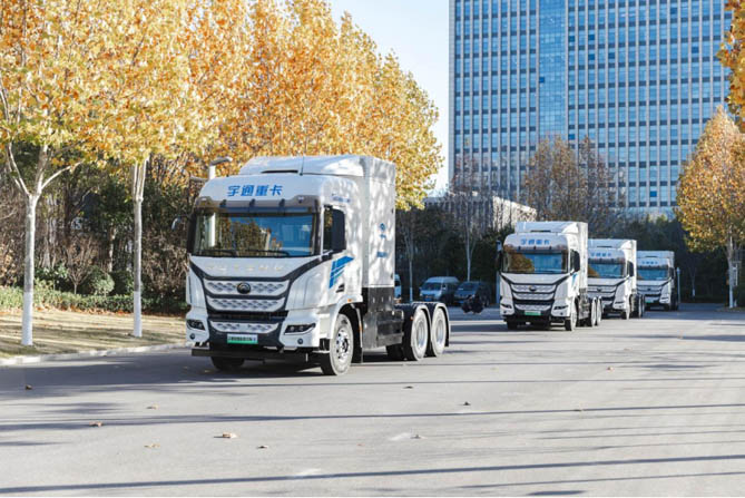 事实上,在一些场景下,燃料电池重卡已经开始为运营企业降本增效,带来更高的收益。安阳一家化工企业的负责人介绍,该公司需要将自产的焦炭运输到林州的炼钢厂,固定时间,固定线路,每天往返两到三次,对车辆稳定要求较高。同时,焦炭焦化过程中产生了氢气,为当地氢气的制备提供了丰富的资源。这种情况下,选择燃料电池重卡作为运输工具就非常合适。该负责人介绍,通过前期多方考察比较,选择了宇通燃料电池牵引车,经过测算,一台车每百公里比燃气车可节省20元左右的运营成本,按照一年30000公里的行驶里程计算,60台可以节省36万元运营成本。