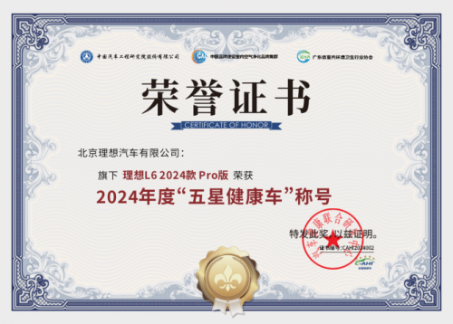 对于理想汽车来说,始终把用户安全放在第一位,健康安全性能也必须是首位。看得见的安全是顶配,看不见的健康安全也必须是顶配。至此,作为家庭首选的豪华品牌,在中国汽车健康指数评价中,理想汽车全系车型均通过中国汽车健康指数的全五星认证。