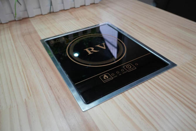 会客区桌板上设计有电磁炉,涮火锅美滋滋。